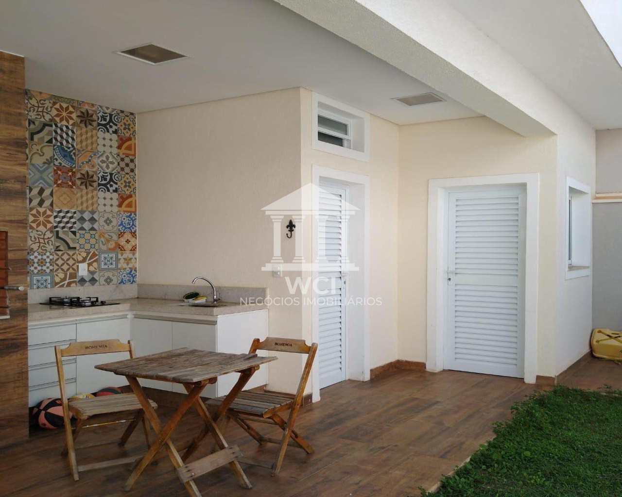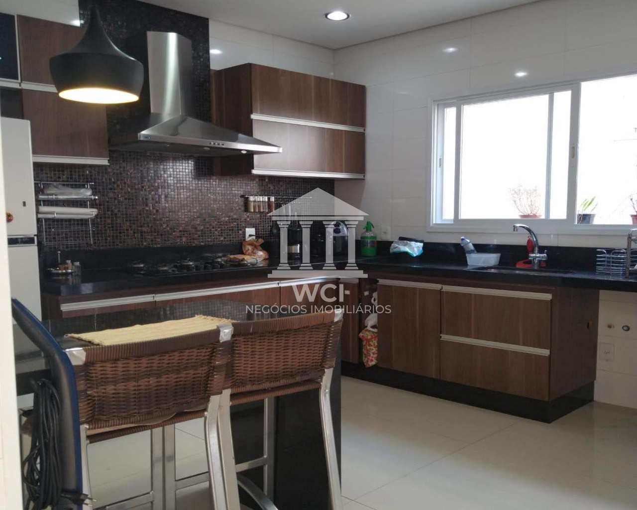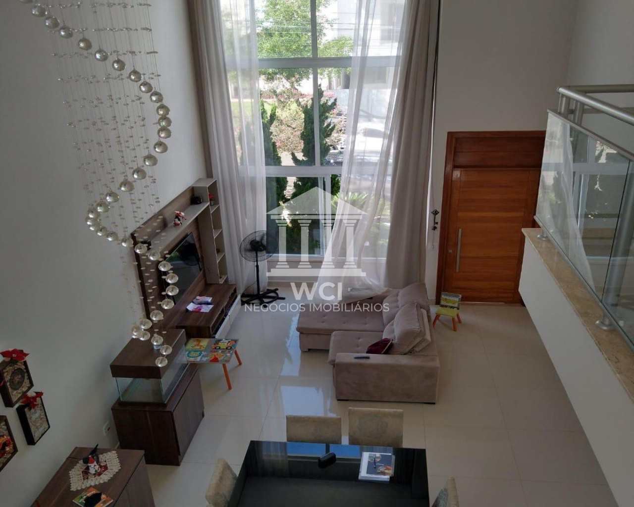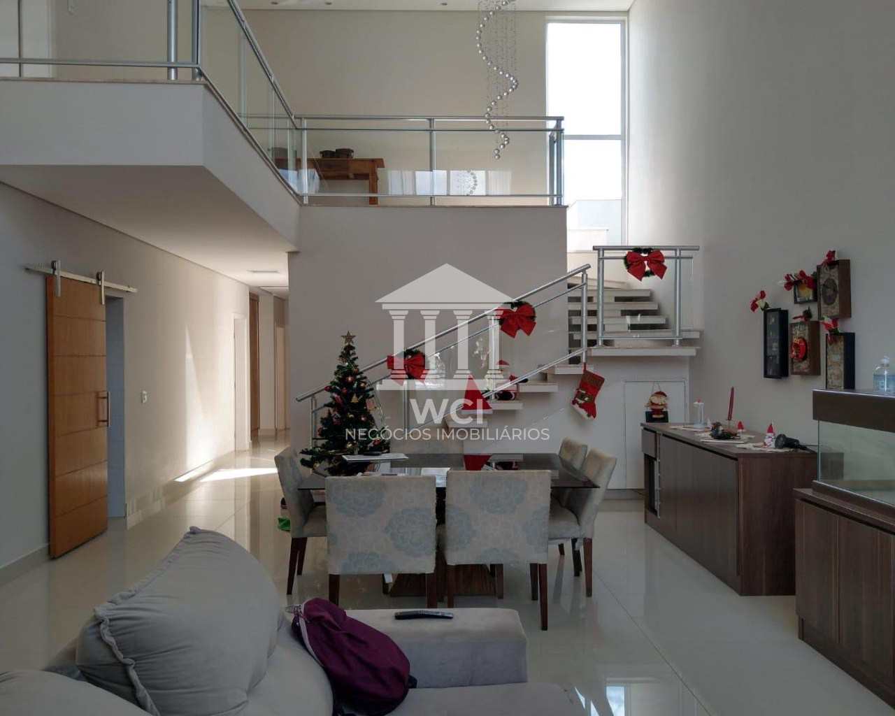 Casa tipo sobrado com quatro dormitórios, sendo uma suíte master, sala social com pé direito duplo, sala de jantar, banheiro social, banheiro externo, lavabo, cozinha, varanda gourmet, depósito, garagem para dois carros cobertos. O acabamento do imóvel é de alto padrão e móveis planejados em todos os cômodos. O condomínio tem uma área de lazer completa e está numa localização estratégica para quem quer estar perto do centro da cidade e às saídas da cidade.